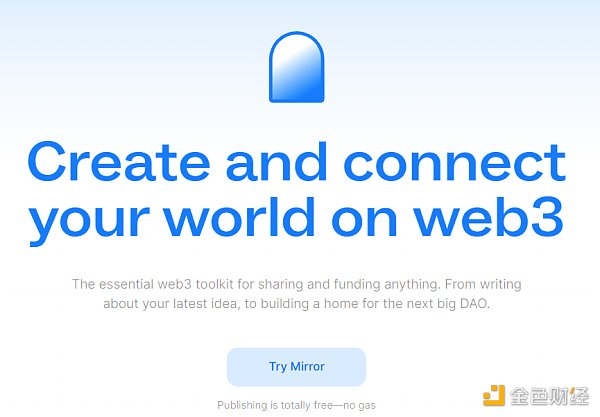 Mirror 跟中心化的寫作平臺最大的不同是,他具備加密區塊鏈產品的特性和功能。參與用戶無需通過郵箱賬號,手機號碼,社交帳戶等中心化的身份驗證手段來注冊賬號,只需要綁定自己的 0 x 開頭的錢包地址即可生成獨一無二的“作者專欄”,類似于上文所提及的 ENS(以太坊域名)。對于部分創作者來說,跟外界的接觸僅僅由一串小小的字符連接,完美的融合了去中心化身份的理念。