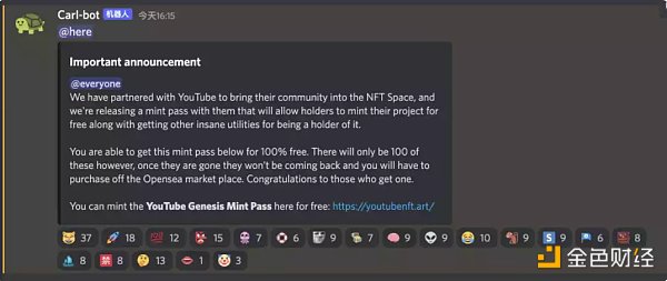 這個截圖是 OpenSea 官方的 Discord 中的消息,大意是說 OpenSea 要和 YouTube 合作發行 NFT,只有 100 個免費名額。小白用戶看到這個消息可能立馬 FOMO 了,點擊截圖中的鏈接后,看到的網站大概長這樣。