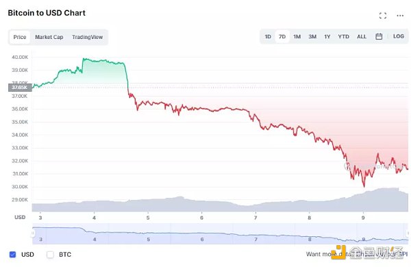 LFG 賣出 BTC,“索羅斯”賣出 UST,最終導致鏈變得擁擠,CEX 將 UST 的提款暫停。加密社區感到恐慌,因為他們想知道要賣出多少 BTC 才能保持掛鉤,BTC 從 4 月 11 日的 4.2 萬美元下跌 25% 至 3.13 萬美元。終于,BTC 下跌加速,UST 徹底脫錨,空軍大獲全勝。