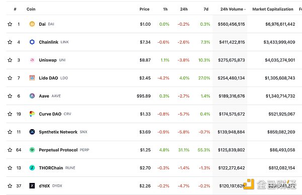 過去24小時去中心化交易所的交易量 數據來源:coingecko