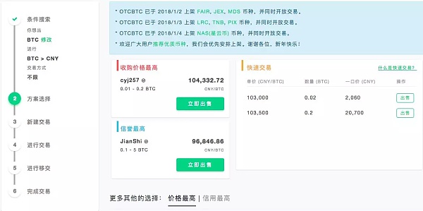 盡管你也可以和朋友直接轉帳交易,不過出于安全和溢價考慮(目前場外交易平臺比特幣賣價比交易所要高10%左右),還是建議大家通過場外交易平臺更為穩妥。