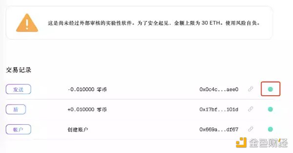接受者可以填寫用戶名或者以太坊地址都可以。然后注意黃色的警告,軟件尚未審計,金額上限為 30 ETH,風險自擔。