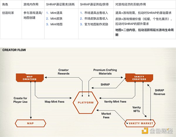 創造玩家:支撐游戲內的二次創作經濟,通過游戲道具/地圖的制作,與SHRAP通證產生交互