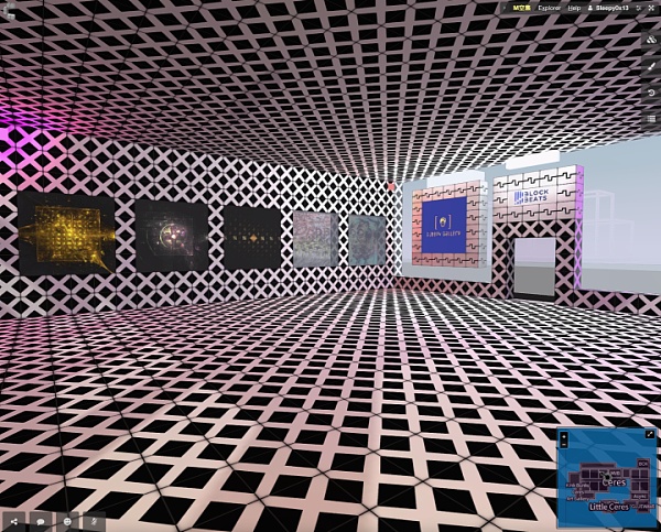 最常見的便是加密藝術展,用戶可以直接將自己創作、收藏家 NFT 掛在建筑中,觀眾通過點擊即可跳轉到購買頁面。舉辦大型藝術展時,只需點擊傳送門即可輕松前往其他展館。