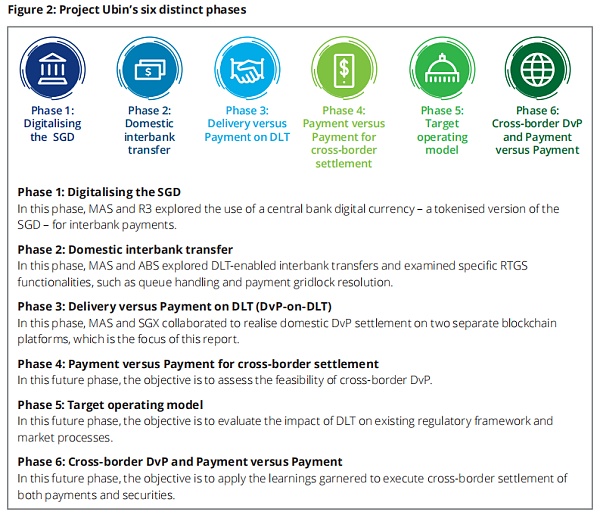 2016年11 月 16 日,MAS 宣布將與一家受區塊鏈啟發的技術公司和全球最大的金融機構財團R3合作,以提供一個概念驗證,測試DLT在促進銀行間支付方面的有效性,即Ubin項目。該項目始終圍繞著一個核心理念,即建立一種央行數字貨幣——新元(SGD)的標記形式。