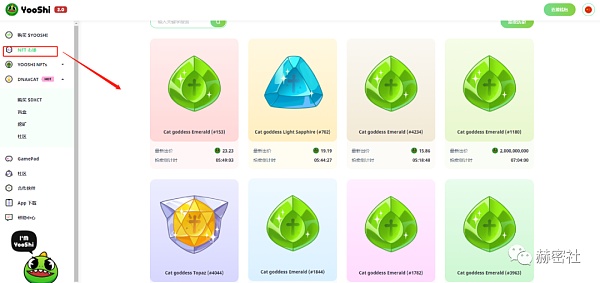如果沒有參與盲盒搶購活動,用戶可以通過YooShi的拍賣/交易市場獲取喵女神的神秘寶石。接下來正式進入挖礦教程環節。