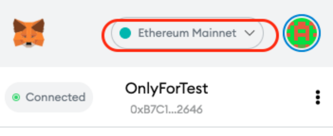 1)打開 Metamask 錢包,選中頂部下拉框