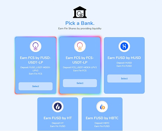 上面分別是Fin Cash、Fin Share、Fin Bond,當前價格、供應量,點擊Bank進入挖礦頁面