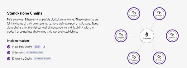 Polygon 在擴容上也有兩種,分別是Secured chains 和 Stand-alone chains。