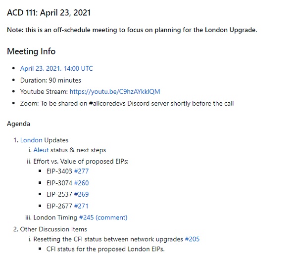 4.17 的AllCoreDev 對 Aleut (只涵蓋 EIP-1559 和 3198)以后的測試網還需要添加哪些內容進行討論,這部分內容又涉及是否倫敦升級后就進行“合并”,討論的重點包括: