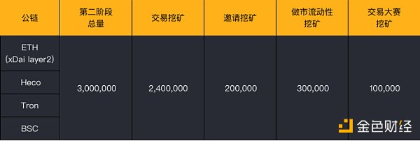 在第二階段交易挖礦之后手動領取或統一發放,預計發放時間2021年4月,在每個挖礦鏈上領取或空投發放,挖礦代幣無鎖定期一次性100%釋放。