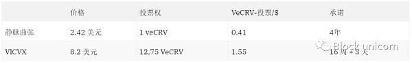除了 CVX 提高盈利能力以影響 Curve 之外,承諾也少于 VeCRV。對于比較表,我假設 CRV 鎖定 4 年。對于較短的承諾,差異更加有利于 vlCVX。