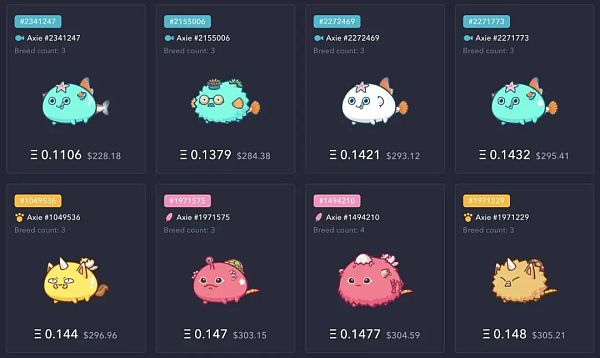 Axie Infinity 中的寵物價格