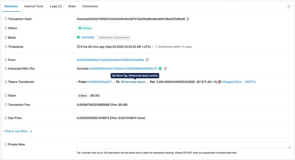 在Medium文章發表兩天后,Twitter用戶@ZachXBT發布分析報告,顯示以太坊錢包0x6AE通過利用該漏洞成功獲得了價值330萬美元的加密貨幣。