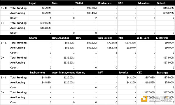 由上圖可見,X-to-earn、Web Builder、Legal 是經驗證的 beta。其具體融資數據如下。