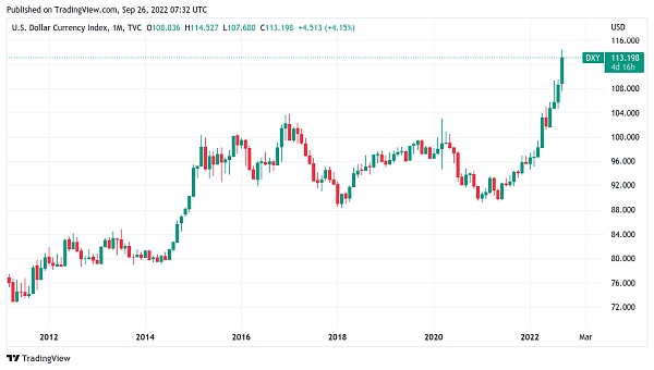 美元指數(DXY) 1個月蠟燭圖 來源:TradingView