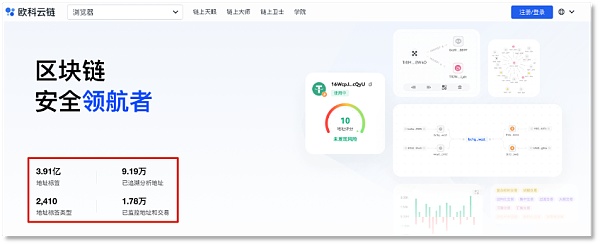 歐科云鏈的工作是將這些處理過的數據以可讀、可視的方式傳遞給有需求的外界,服務對象涵蓋了政府部門、企業客戶和普通用戶。它最為業內所熟知的產品是「鏈上天眼Pro」,這個工具正在為國內的公檢法部門服務,用于追蹤利用加密資產實施的不法行為,比如近年來頻繁打擊的涉數字貨幣的電信詐騙案。