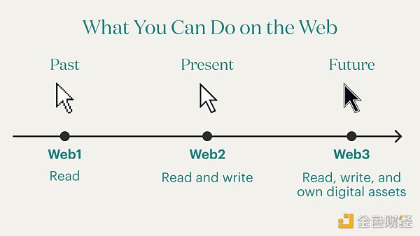 Web3是區塊鏈或數字資產相關技術建立起來的Web體系。定義是用來認識結構和機制的,這個定義足夠完善,但也同樣令人困惑。目前Web3最公認的陳述是:「Web1對大多數用戶來說是只讀的,Web2 允許用戶既讀又寫,Web 3 通過區塊鏈賦予了用戶閱讀-寫作-擁有的權力。」