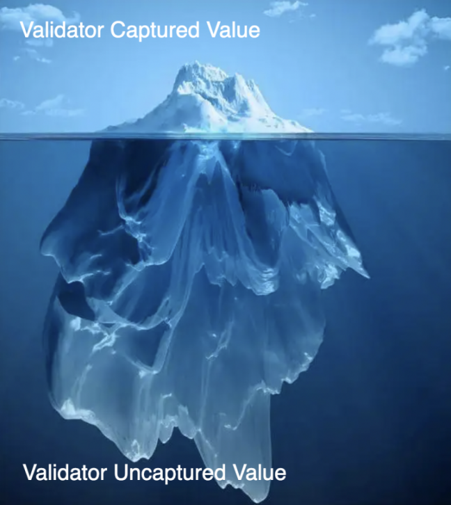 Validator Uncaptured Value 是“藏在水面下的價值”,由于涉及到 External MEV Market(Off-chain)并沒有那么透明。