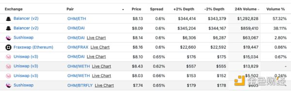 OHM 100% 的交易量是在 DEX 上進行的,這是由于其 rebase 機制的性質和對去中心化的強烈愿景。
