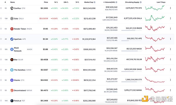 24小時NFT交易量、交易量前十項目 數據來源:Coinmarketcap