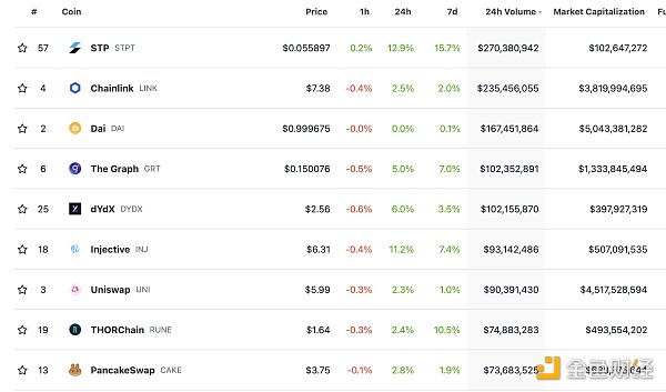 過去24小時去中心化交易所的交易量 數據來源:coingecko