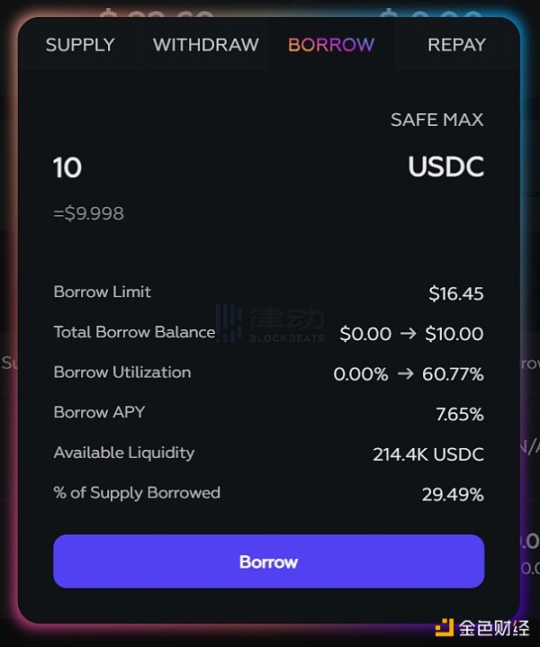 3. 點擊 USDC,Borrow 一定數量 USDC