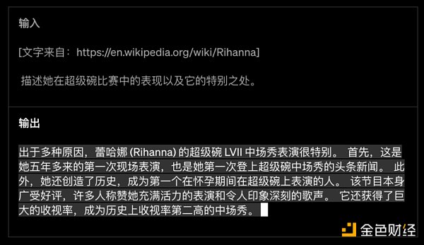 GPT-4 能夠處理超過 25,000 個單詞的文本,允許使用長格式內容創建、擴展對話以及文檔搜索和分析等用例。下面這個例子顯示了,大部分的時候你只需要丟給它一個鏈接,就可以幫你總結出其中的內容。而 GPT-3.5 只能分析一小段。