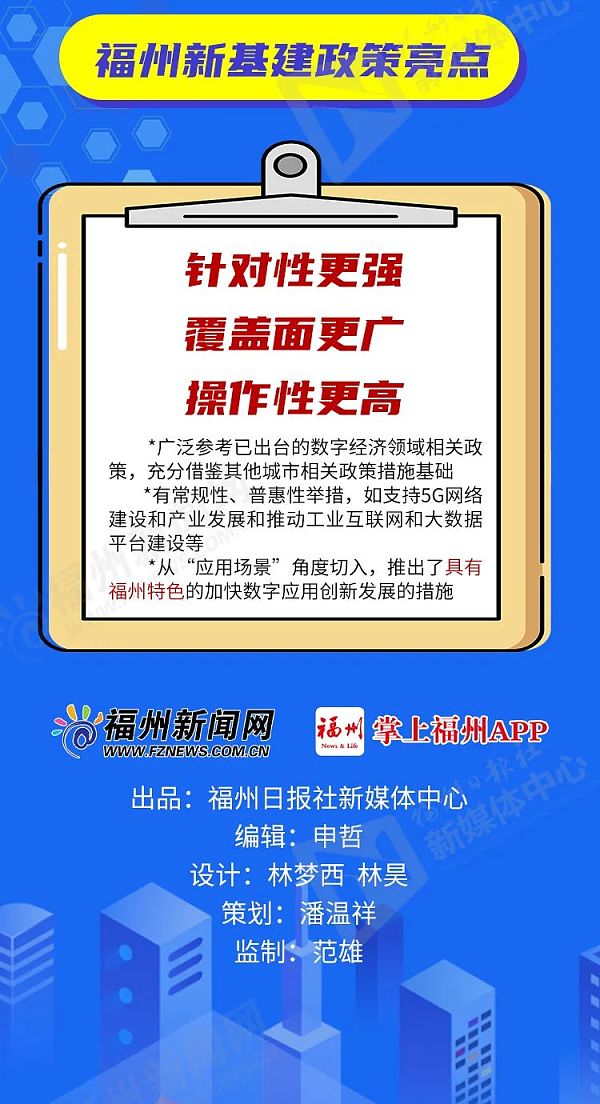 為加快新型基礎設施建設,促進新一代信息技術與各行業各領域的融合創新應用,福州還出臺一系列配套政策。