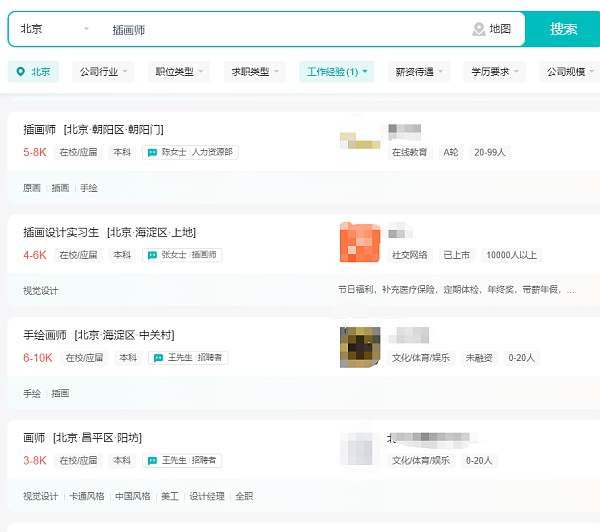 (此處以Boss直聘平臺提供的北京市的插畫師招聘信息作為參照)