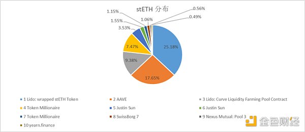 有 17.65% 的 stETH 存在 AAVE 中,是 stETH 的第二大去處。