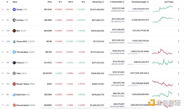 24小時NFT交易量、交易量前十項目 數據來源:Coinmarketcap