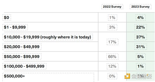 從歷史上看,該調查最引人入勝的話題之一是衡量投資者對比特幣價格的預期,比特幣是最大、使用最廣泛的加密資產。調查結果反映了短期的看跌觀點。
