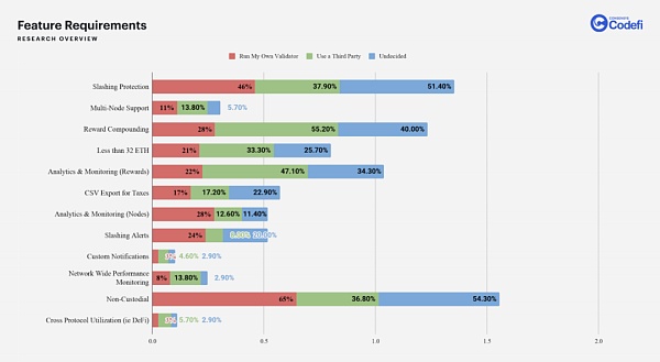 雖然人群1的第一選擇是自建節點,但其實有20%的人表示愿意使用第三方Staking服務商的服務,另有37.5%的人表示不確定。所以如果有更好的第三方服務出現,人群1中的部分也是潛在的客戶。