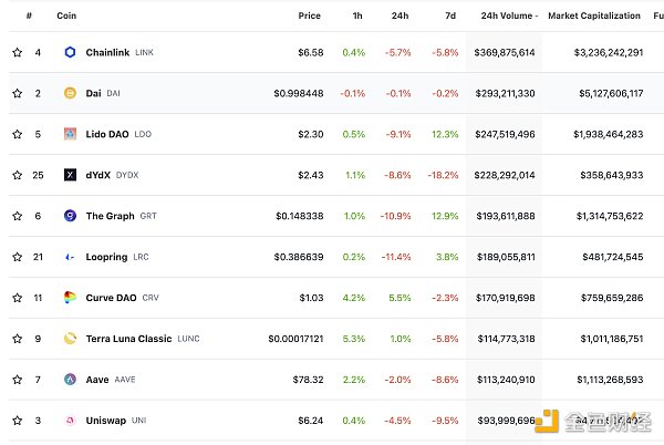過去24小時去中心化交易所的交易量 數據來源:coingecko