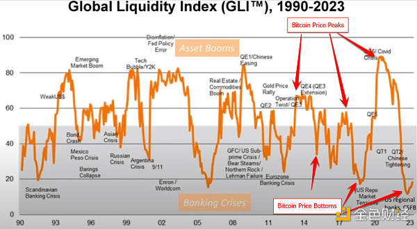 全球流動性似乎在 22 年底觸底,這也標志著比特幣和標準普爾 500 指數的底部。今年年初,我們看到全球流動性略有反彈。比特幣上漲了 80% 。標準普爾 500 指數上漲 15% 。
