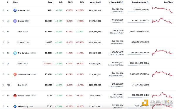NFT總市值、市值排名前十項目 數據來源:Coinmarketcap
