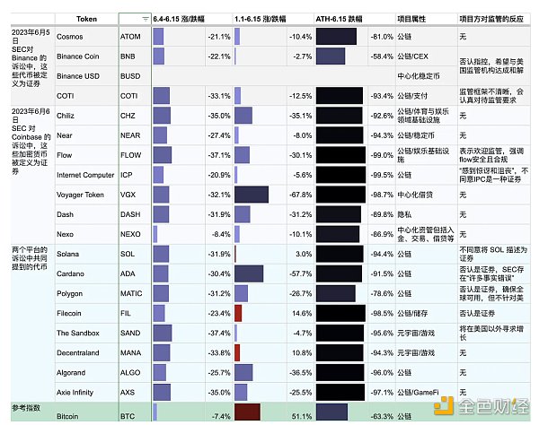 美國證券交易委員會(SEC)在6月5日和6日分別針對加密貨幣交易所幣安和Coinbase的訴訟中指控19種代幣的本質是證券,這引發了全市場急劇拋售。