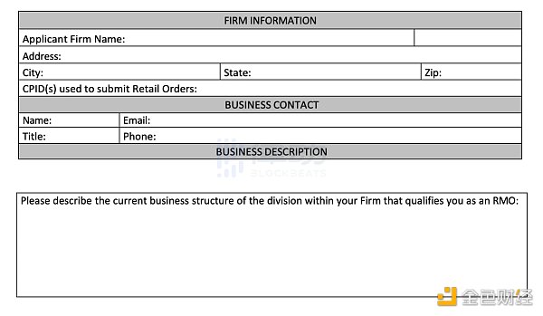 想要獲得 EDX 散戶組織成員(Retail Member Organization)資格并進行交易,需要完成該申請。「散戶訂單」是指來源于個人需求并由 RMO 提交給 EDX Markets 的訂單,前提是訂單的條款在價格或市場方面沒有變化,并且訂單不是來源于交易算法或任何其他計算機化方法,除了 RMO 可以使用算法來促進將訂單路由到交易所(「智能訂單路由器」)。就本申請而言,術語「個人」是指根據人類提出的請求產生訂單,而不是通過計算機算法產生的訂單。