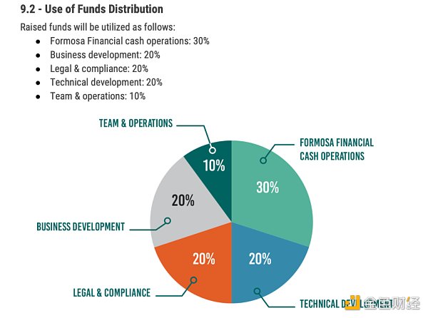 從 2018 年初開始,黃立成與臺灣人物謝國梁(George Hsieh)、Czhang Lin 和 Ryan Terribilini 密切合作,創立了寶島金融,這是一個為區塊鏈公司所打造的金庫管理平臺。寶島金融在 2018 年 4 月的最后一周進行了天使輪融資,共籌集了 22,000 ETH。私募輪銷售于 5 月 31 日結束,再籌集了另外 22,000 ETH。這些銷售出去的代幣占總供應量的 30%。寶島金融一共籌集了 2,300 萬美元(44,000 ETH)。一些知名的投資人都參與其中,包括幣安(Binance)、QCP Capital、Lemnis Cap、Block One、密銀/黃立成(記住這一點)、Maicoin、Wilson Huang、Leo Cheng’s Syndicate、Blockstate 和 Block One。