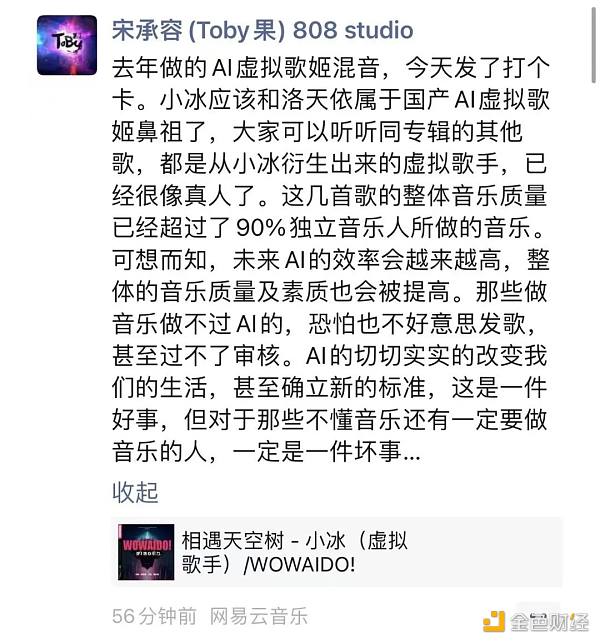 他當然不是崔健(雖然這個名字讓人浮想聯翩),但顯然,一個“AI歌手”背后的意義,遠不止“咬字和音色準不準確”那么簡單。