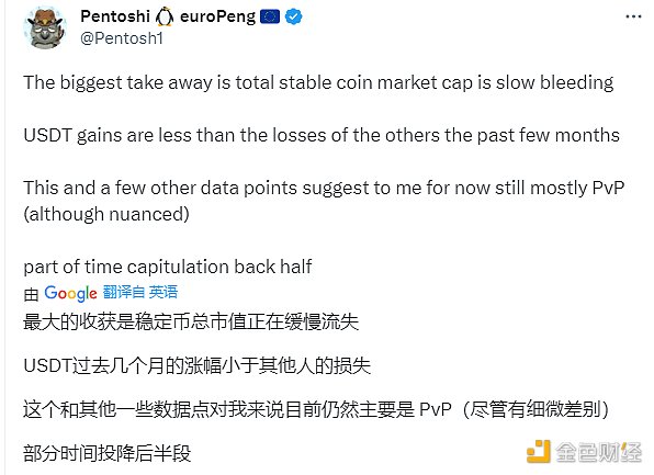綜上,@Pentosh1的說法是正確的,目前整個市場仍處于 PVP 博弈狀態,一旦我們看到穩定幣大量流入,這可能預示著更多的散戶和風險偏好者的回歸。