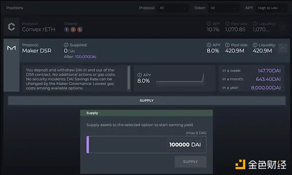 本文將細說年化利率8%的收益來源,什么是DSR和EDSR,由于MakerDAO沒有官方的存款頁面,所以介紹4個實現 $DAI 存款的位置和步驟。