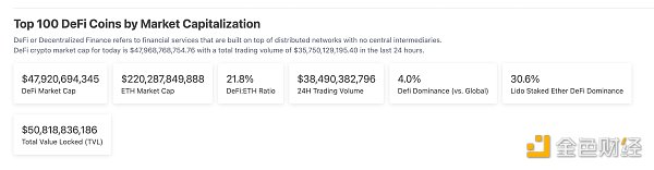 1、DeFi代幣總市值:479.20億美元