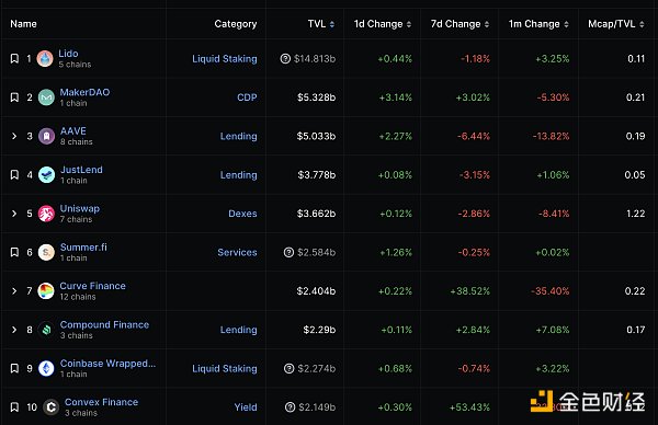 DeFi總市值及前十代幣 數據來源:coingecko