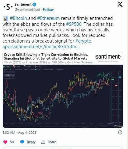 加密貨幣與股市密切相關。后者通常會在經濟困難時期崩潰。如果比特幣和ETH仍與SP500相關,它們也可能轉為看跌。