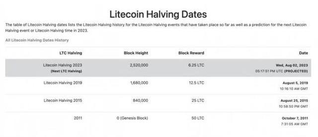 根據LITECOINHALVING的數據,截至2023年7月25日,萊特幣的區塊獎勵將于2023年8月23日從12.5LTC減半至6.25LTC。在下一次LTC減半事件之前,仍剩余4,845個區塊。