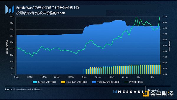 Pendle最近的價格增長受到了6月初"Pendle戰爭"的推動。在Penpie和Equilibria推出后,它們迅速成為最大的vePENDLE持有者,并隨后導致了流通PENDLE供應的減少。這種供應變化與Penpie和Equilibria上線后30天內價格上漲了101%相關。