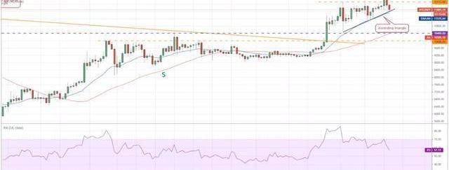 但是,如果空頭下跌并且將價格維持在20天均線下方,則有可能跌至11,000美元,然后跌至10,400美元。