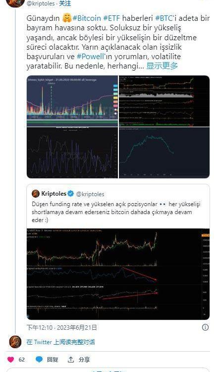 近期美元指數的回落推動了比特幣的上漲勢頭。當DXY指數回落時,投資者對比特幣等風險資產的情緒往往會增加。由于美聯儲暫時暫停加息,市場人士猜測美國經濟可能會繼續增長,從而進一步給美元降溫。因此,受益于有利的宏觀環境,比特幣與股市一起上漲。